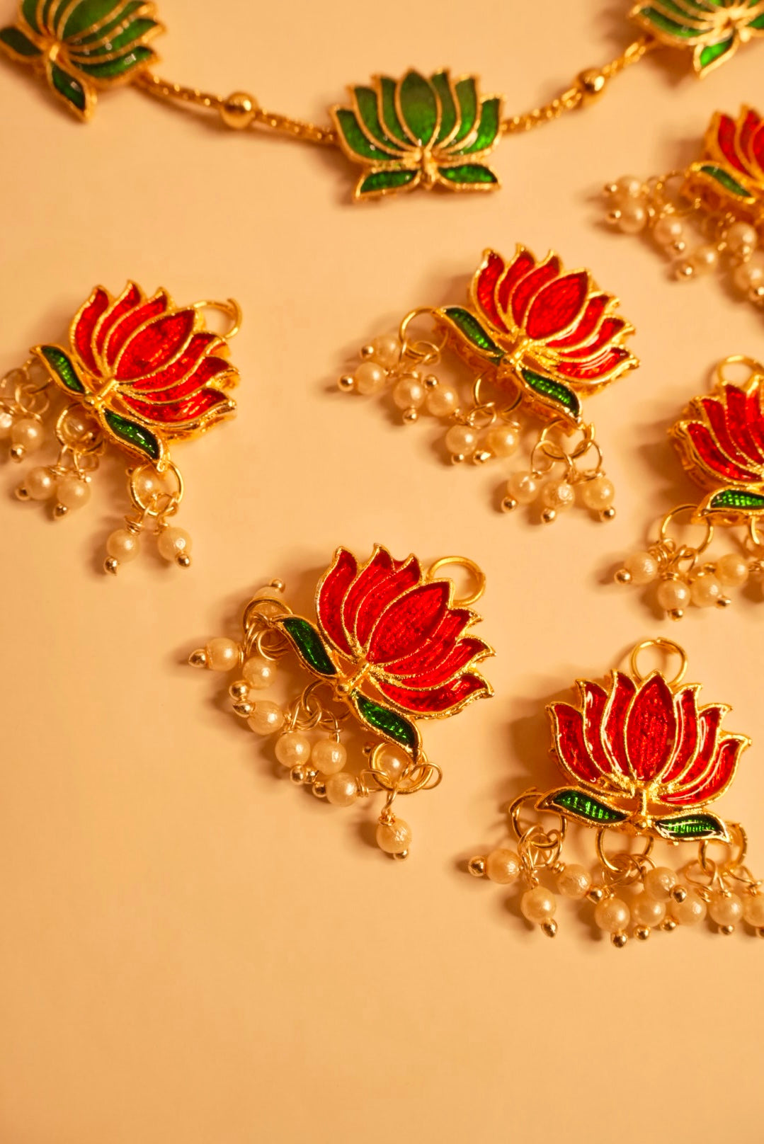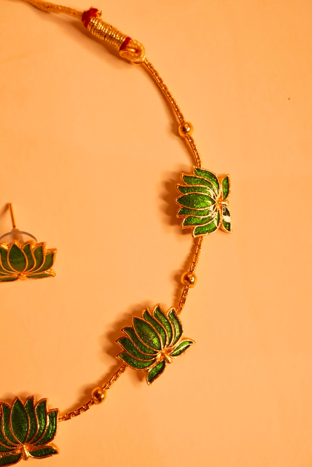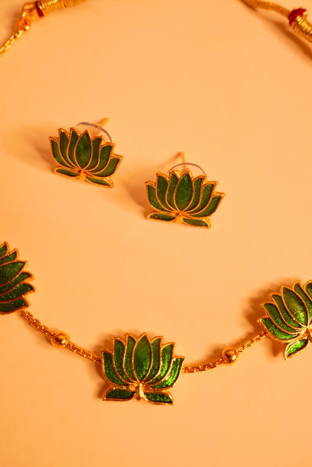 include Green Necklace, Green Earrings and 6 Red Lotus Hair Pins 🪷